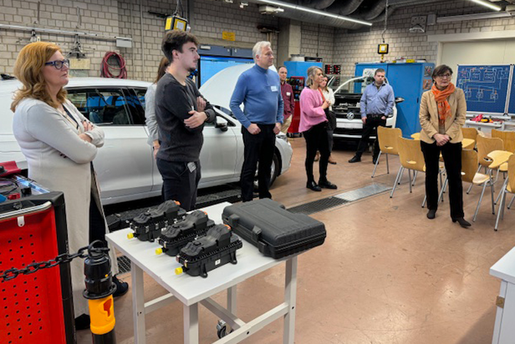 Für alle Bildungsgänge stehen modern ausgestattete Werkstätten und Labore zur Verfügung. Hier erfolgt die praktische Ausbildung an der Schule. Das Netzwerk wurde durch die Werkstätten und Labore für Automatisierungstechnik, für Metallbauer und für KFZ-Mechatroniker geführt. Gefragt nach den schulischen Voraussetzungen für eine Ausbildung im KFZ-Bereich, berichtete der Lehrer Thomas Battaglia: „Wer wirklich Lust auf die Ausbildung hat, kann diese auch mit einem mittelmäßigen Schulabschluss schaffen.“