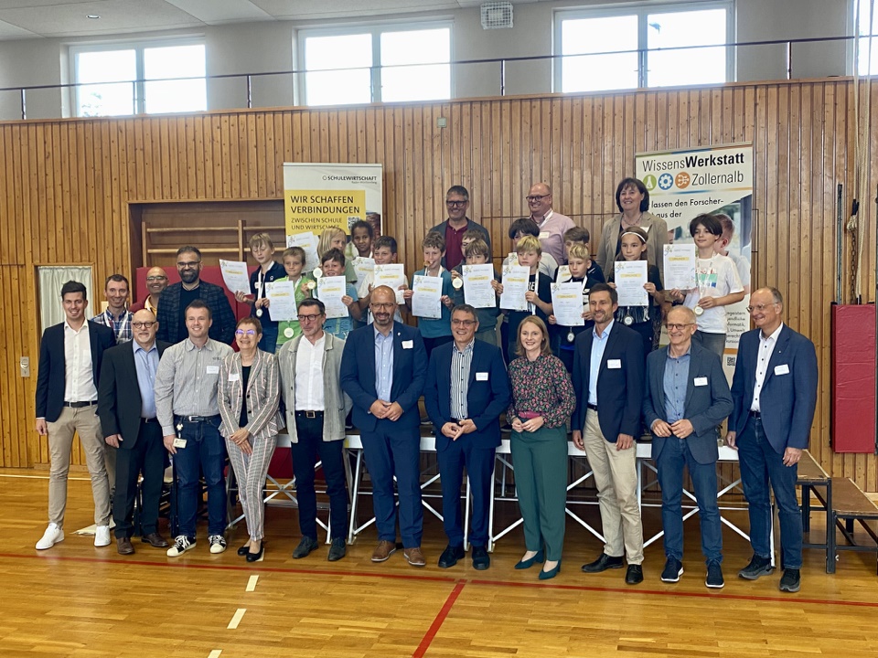 Nach Grußworten von Staatssekretärin Sandra Boser Md; dem neuen Oberbürgermeister von Balingen, Dirk Abel; Niko Skarlatoudis, dem Leiter der WissensWerkstatt bei der Stadt Balingen sowie Dr. Jan Vetter von Südwestmetall, die alle die Bedeutung der MINT-Bildung für die Zukunft heraushoben, hatten die Kinder Gelegenheit, von ihren Erfahrungen des Tages zu berichten: „Ich hab mein Auto von der Form her so gebaut, dass es schnell fährt“.