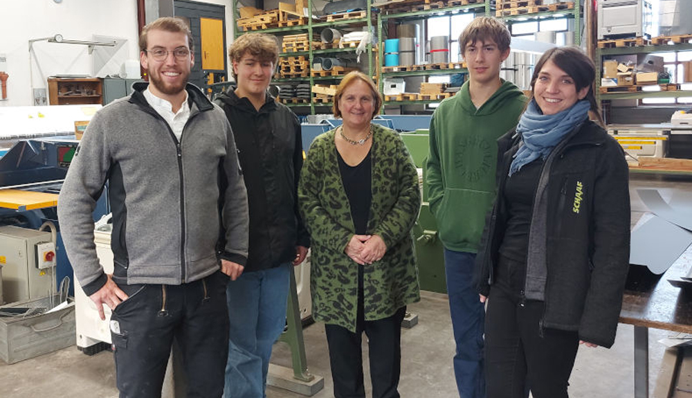Auch Kultusministerin Theresa Schopper hat einen Blick hinter die Kulissen beim Handwerksbetrieb Schaaf GmbH in Zuffenhausen geworfen, der auf die Gewerke Zimmerei, Klempnerei, Dachdeckerei und Fassadengestaltung spezialisiert ist. Die gesamte Amtsspitze des Kultusministeriums hat verschiedene Arbeitgeber besucht, die bei den Praktikumswochen mitgemacht haben, und ist mit den Ausbildern sowie mit den Praktikantinnen und Praktikanten ins Gespräch gegangen.