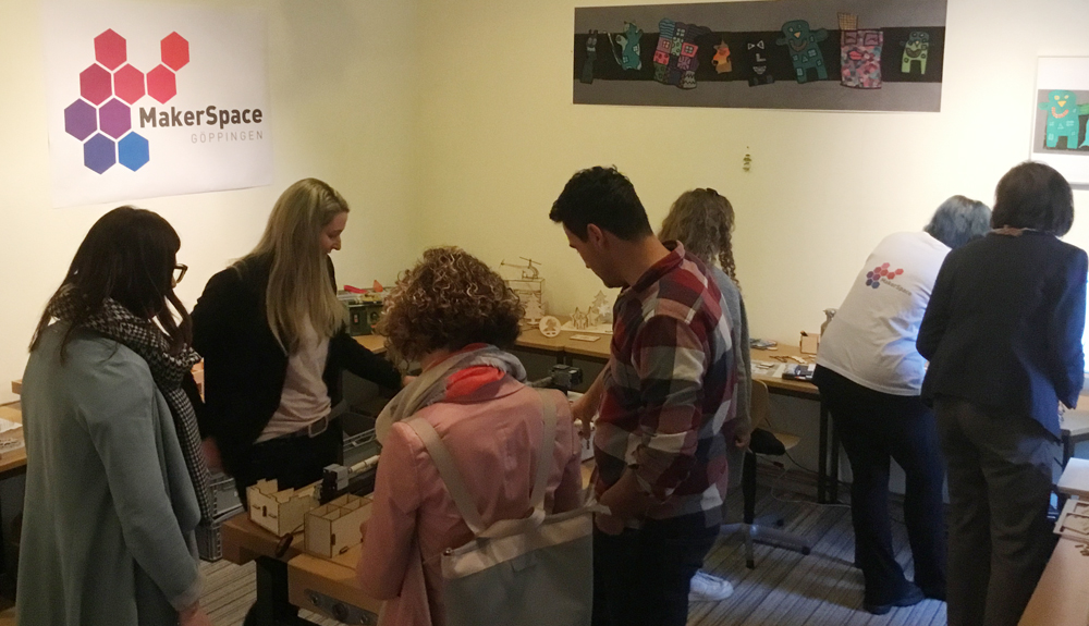 Der "Werkstatt-Nachmittag" ermöglichte Lehrkräften und Vertreterinnen und Vertreter der Agentur für Arbeit, von Unternehmen und anderen Institutionen einen Einblick in die Räume und Arbeit des MakerSpace im Kreismedienzentrum Göppingen. Zwanzig Teilnehmende folgten der Einladung von Professor Coenning und dem Netzwerk SCHULEWIRTSCHAFT Göppingen.