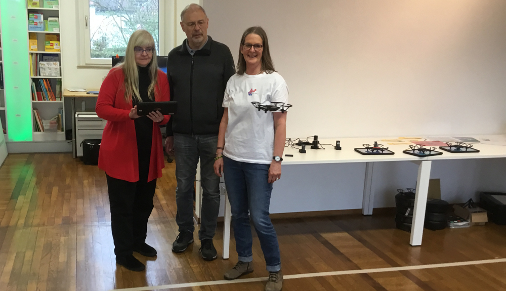 Im MakerSpace werden Schulklassen ab der Grundschule erlebnisorientierte Workshops angeboten. Spielerisch lernen die Schüler:innen den Umgang in der Holzwerkstatt mit einem Lasercutter oder im FabLab mit einem 3 D Drucker. Beliebt sind auch Drohnen- und Robotikworkshops. Das Ergebnis des "Werkstatt-Nachmittags" waren kreativ bedruckte Tassen, Stifteboxen aus Holz und erste Flugversuche mit den Indoor-Drohnen.