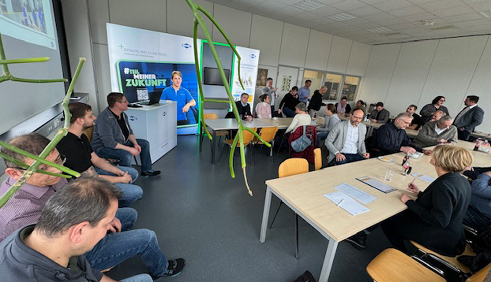 Nach dem Rundgang durch die geräumige und moderne Ausbildungswerkstatt bekamen alle Teilnehmer die Gelegenheit zum Austausch. Dabei wurden die Probleme der Jugendlichen klar benannt. Einige Schulvertreter berichteten von vermehrten psychischen Erkrankungen der Schüler. In Folge dessen ist die Nachfrage bei den schulpsychologischen Beratungsstellen sehr groß, so dass nicht jedem Schüler zeitnah geholfen werden kann. Einig waren sich alle Besucher, dass Praktika, deren Vor- und Nachbereitung für die Berufswahl eine große Rolle spielen.