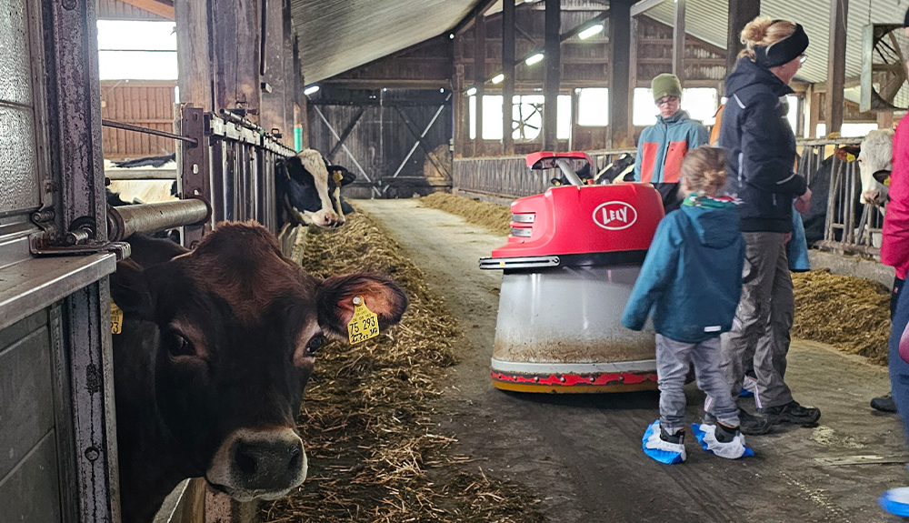 Beginnend im Melkstall war zu sehen, dass das Bild der Landwirtschaft längst überholt ist. Die Kühe suchen eigenständig den Melkroboter auf und anhand ihrer Transponder am Hals, erkennt der Melkroboter ganz genau, welche Kuh gemolken werden darf, analysiert dabei die Milchmenge und -qualität und steuert automatisch die individuelle Kraftfutterzufuhr. Doch dem nicht genug: ein Entmistungsroboter sorgt für Sauberkeit im Stall und ein Anschiebe-Roboter liefert Futternachschub. Familie Müller kann dies alles überwachen: mithilfe einer speziellen App können wichtige Parameter wie beispielsweise das Wohlbefinden, die Bewegungsaktivität sowie die Gesundheit ihrer Kühe von der App im Blick gehalten und gesteuert werden.