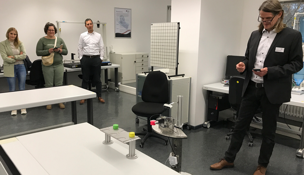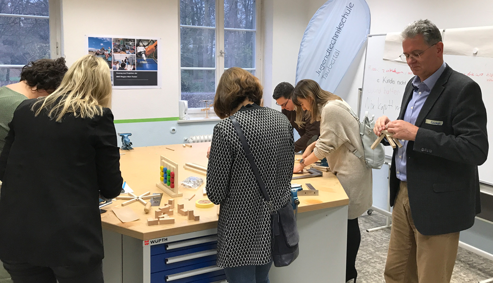 Iris Lange-Schmalz präsentierte die Entwicklung zum Verein MINT-Region Main-Tauber vor dem Plenum. Anschließend wurden beim Rundgang in zwei Gruppen die MINT-Aktivitäten vorgestellt. In der Werkstatt der Jugendtechnikschule durften die Gäste sich ein Topfuntersetzer bauen. Im Labor der DHBW führte Prof. Siegismund vor, wie er einen Roboter per Smartphone steuert. Bei einem Snack gab es weitere Gelegenheiten sich mit MINT-Akteuren aus Schule, Hochschule und Wirtschaft zu vernetzen.