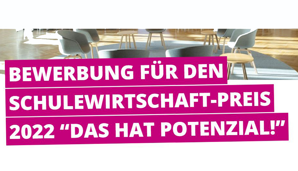 - Kooperation Schule – Unternehmen: In dieser Kategorie werden Kooperationen zwischen Schulen und Unternehmen ausgezeichnet, die sich gemeinsam dafür stark machen, Jugendlichen Einblicke in die Praxis zu ermöglichen. Z. B aus den Bereichen digitale Bildung, MINT, ökonomische Bildung. Die Kooperationspartner Schule und Unternehmen bewerben sich gemeinsam.