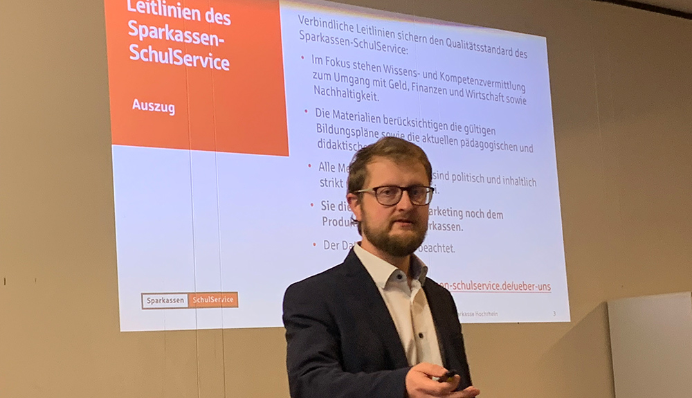 Johannes Maljuta von der Sparkasse Hochrhein, Mitglied der Steuergruppe SCHULEWIRTSCHAFT Waldshut, stellte dazu den Sparkassen-SchulService vor. Dieses kostenlose und werbefreie Angebot unterstützt Lehrkräfte im Fach Wirtschaft, Berufs- und Studienorientierung (WBS) und behandelt Themen wie Zahlungsverkehr, Kredite, Geldanlage und Berufsorientierung.