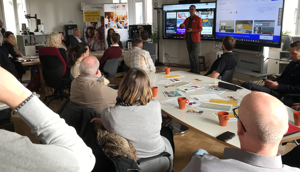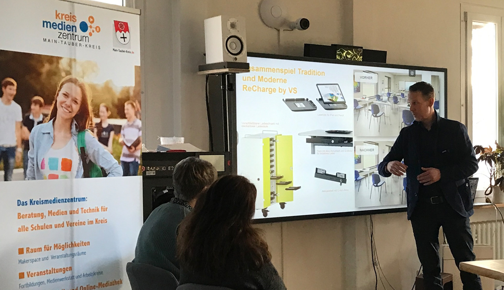 Im Kreismedienzentrum Main-Tauber-Kreis in Tauberbischofsheim-Distelhausen wurde deutlich wie Lernräume zukunftsfähig gestaltet werden können. Ulf Neumann als Leiter zeigte in unserer Netzwerkveranstaltung in dieser innovativen Umgebung wie vielfältig die Möglichkeiten zur Nutzung und zum Verleih sind. Als Veranstaltungspartner waren Marketingleiter Axel Haberer, Vertriebsleiter IT-Lösungen Holger Englert und Systembetreuer Markus Merkert von der VS Vereinigte Spezialmöbelfabriken GmbH & Co. KG aktiv.