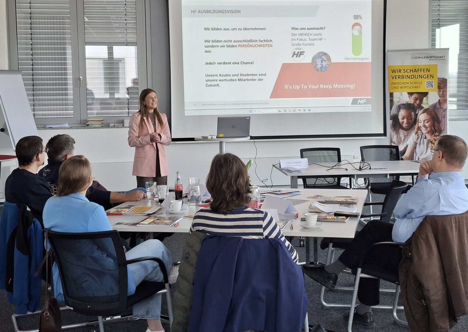 Im Mittelpunkt stand der direkte Einblick in ein engagiertes Ausbildungsunternehmen: Geschäftsführerin Britta Hofmann stellte ihr Unternehmen vor und nahm sich bewusst Zeit für den persönlichen Austausch mit den Akteuren, die am Übergang Schule–Beruf aktiv sind. Dabei wurde deutlich, wie zentral die Ausbildung für die Fachkräftesicherung im Unternehmen ist.